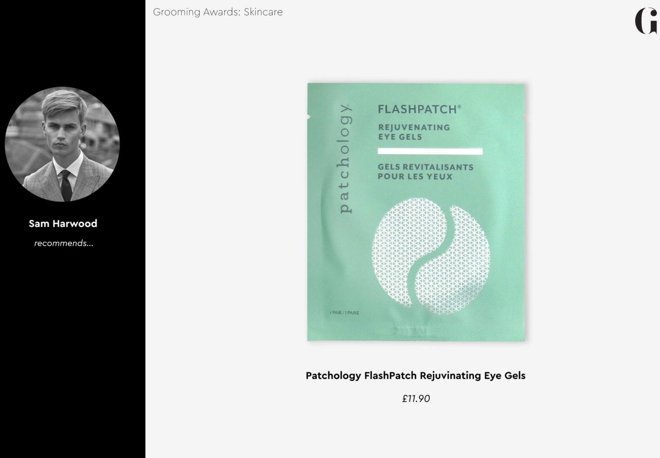 Sam Harwood’s definitive winner in the skincare category was Patchology’s Rejuvenating Eye Gels. Here’s what the model had to say about them: