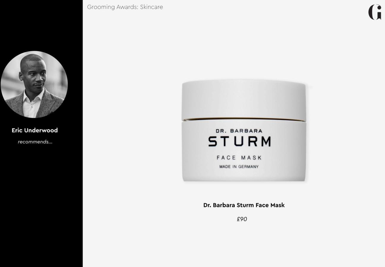 Eric Underwood is also a face mask man. The American British ballet dancer, and friend of Gentleman’s Journal, chose a Dr. Barbara Sturm product as his winner — but not the same cream that got an honourable mention from Adam Tanous. Here’s what he had to say about the Dr. Barbara Sturm Face Mask: