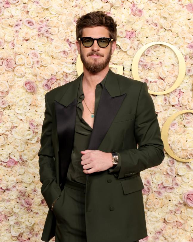 Rocking full forest green Gucci, Andrew Garfield needed a classic watch to not take too much away from his tailoring. For that he went for Jaeger-LeCoultre's ultra thin Reverso Tribute Monoface Small Seconds, which comes in a minimalist-favourite black and gold colourway, and features 18-carat pink gold detailing and a striking black sunray-brushed dial. A neat choice.