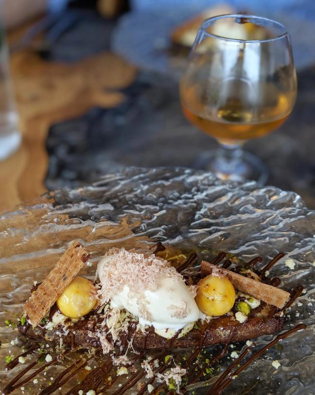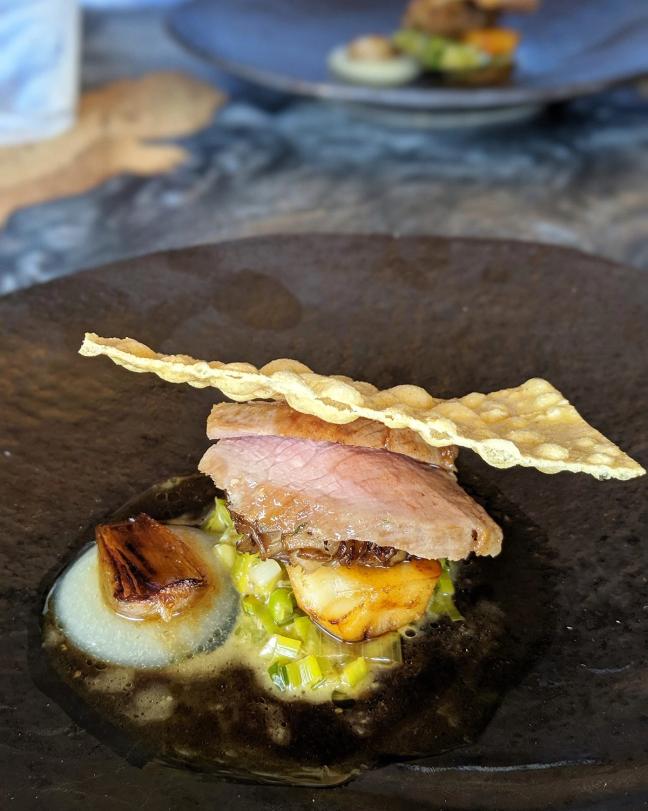 There are not enough hyperboles at my disposal to describe this extraordinary place but suffice to say I would urge anyone to book in for the Wine Flight pairing menu. Entirely discordant flavours meet in perfect harmony right from the first course — titled ‘The Bread Experiment’— in which we were treated to a cumin and chocolate bread, served with test tubes of oil and vinegar, snail fritters and Bloody Mary butter.