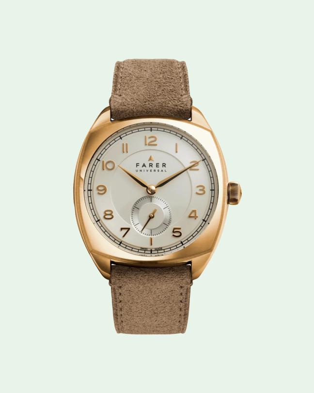 Farer watches are designed in Britain, and handmade in Switzerland. The latest version of its popular Lethbridge brings a new golden sparkle to the Cushion Case collection. The metallic dial is champagne in colour, with the satin-finished raised ring that gives the cushion case watches their signature sector dial look. Polished Arabic numerals, finished in yellow gold PVD, give it further shine.