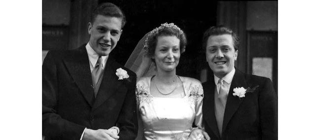 David and Jane Attenborough on their wedding day (accompanied by Richard, right) (Photograph: EMPICS)