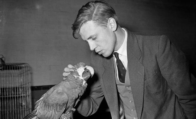 Attenborough pictured with a parrot at London Zoo (Photograph: BBC)