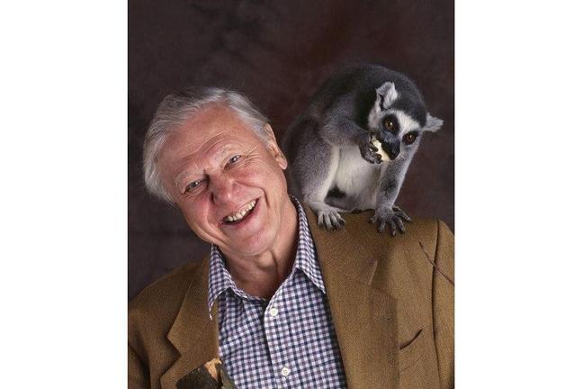 Sir David with a hungry ring-tailed lemur (Photograph: BBC)