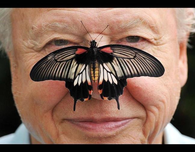 Sir David pictured with a Great Mormon Butterfly on his nose at the launch of the Big Butterfly count at London Zoo (Photograph: Press Association)