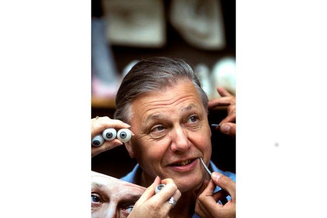 Sir David has his eyes measured and matched for his waxwork at Madam Tussauds Wax Museum (Photograph: Associated Press)