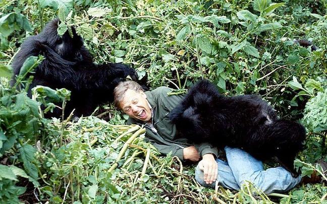 Sir David plays with mountain gorillas in Rwanda while filming Life on Earth (BBC)