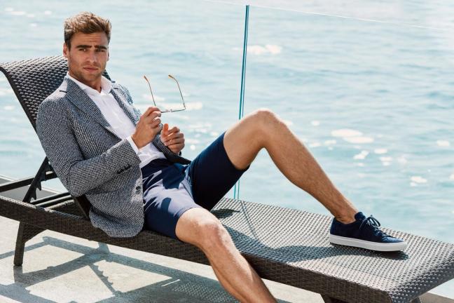 Team your tailored shorts with a summer-weight cotton or linen jacket and a white shirt for a smarter look.