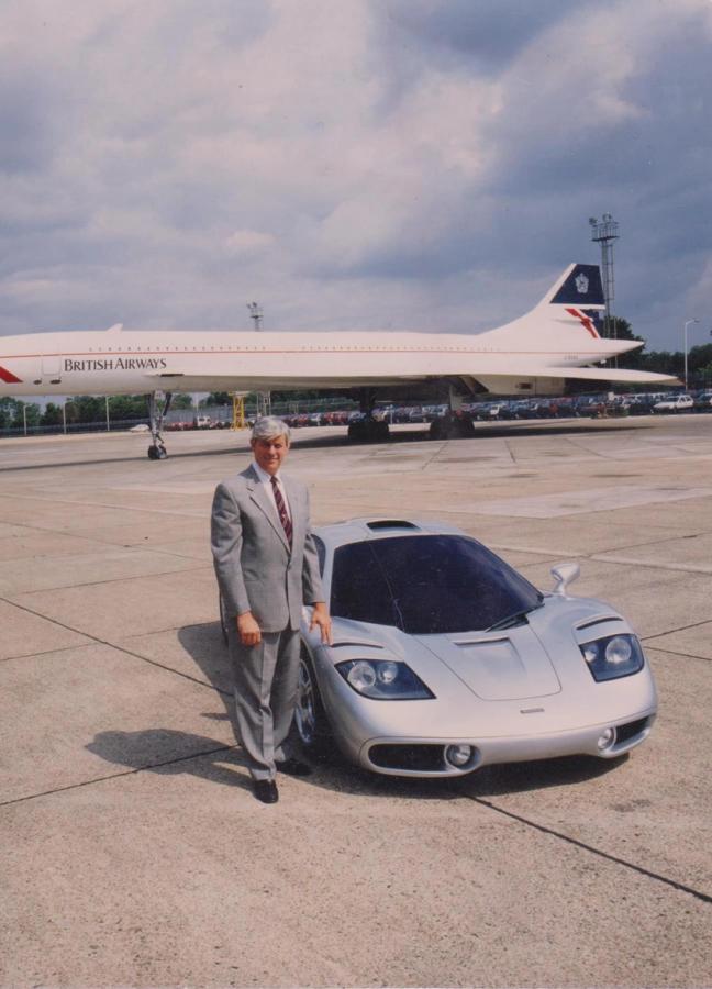 Mean Machines: Fred Finn with a Mclaren F1 in front of a Concorde jet