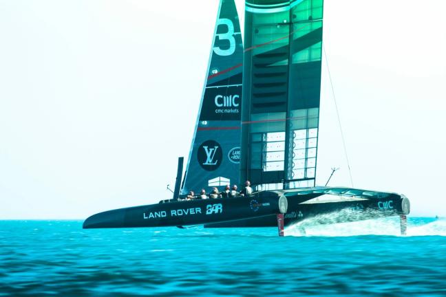 She’s the new high-speed catamaran launched last month by British team Land Rover BAR (Ben Ainslie Racing), one of six teams bidding to win the prestigious 35th America’s Cup, presented by Louis Vuitton, on the sparkling blue waters of Bermuda’s Great Sound this summer.