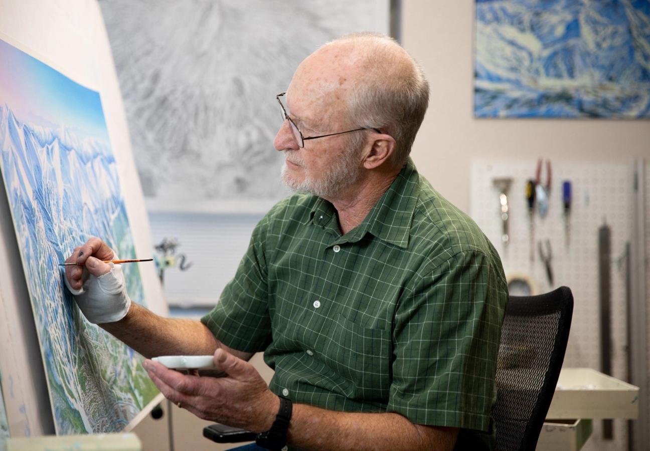In my life, I have had many jobs. I’ve worked in the art department of an after-market automotive instrumentation company; as a partner in an ad agency; and as the diagram artist for courtroom presentations. But one day, at the age of 40, I stumbled upon the work of Bill Brown, the ski map artist of the moment. And it seemed to me that this new avenue, this new adventure, would allow me to return to an old passion that I have had since I was a teenager: painting scenery.