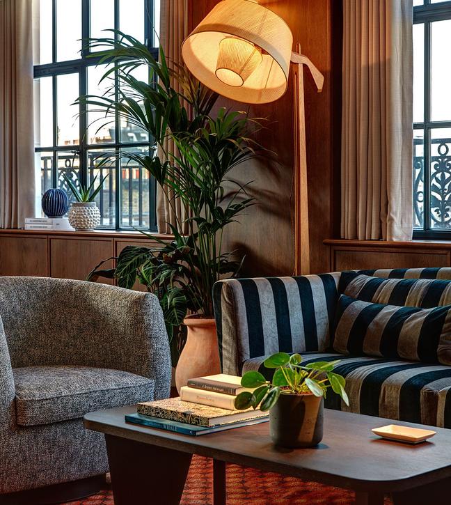 If you prefer to work a little more collaboratively, or simply want a break after a few hours of emails, you can take the lift to the more lively and sociable fifth floor. It’s certainly very inviting, with its modern and vintage furniture, mid-century library, fireplaces and central bar.
