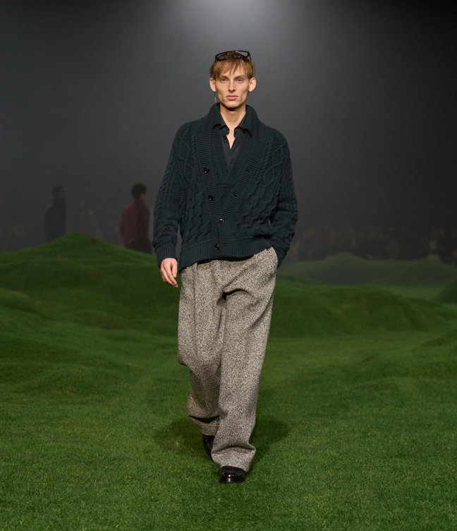 Alessandro Sartori understands what Zegna is about. He joined the house in 1989, took a five year stint at Berluti in 2011, and then rejoined the family-run Italian luxury giant Ermenegildo Zegna Group as artistic director in 2016. His Autumn/Winter 2025 collection is titled “Vellus Aureum,” which references the ultra-lightweight wool fleece which has a world record for its lightness. This was reached in 2023 with a fineness of 9.4 microns, and inspired the wool-heavy collection.