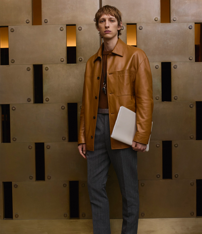 For Autumn/Winter 2025 Tod's Creative Director Matteo Tamburini, who understands what modern men want, offered updated takes on familiar wardrobe staples in the brand's precious collections. The label's signature bomber and shirt jackets now come made from Pashmy leather, part of Tod's Pashmy Project, for a softer feel. Tod's classic earthy and neutral tones were used across the entire collection.