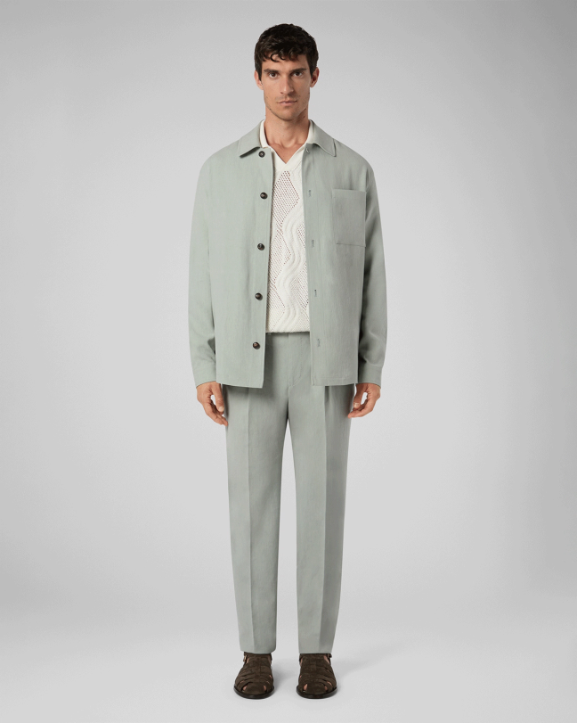 Pal Zileri's SS'25 collection aims to redefine the fundamental pieces of the male wardrobe. The design and aesthetic of the collection takes on a contemporary feel, expressed through clean lines. Reversible garments were lightweight and found themselves at the centre of a venn diagram of sartorial tradition and performance wear. For this season Pal Zileri opted for tones that reflected the natural world, used across jackets, tailored trousers and suits. It was a soft collection, that played into Pal Zileri's expert fabrication.