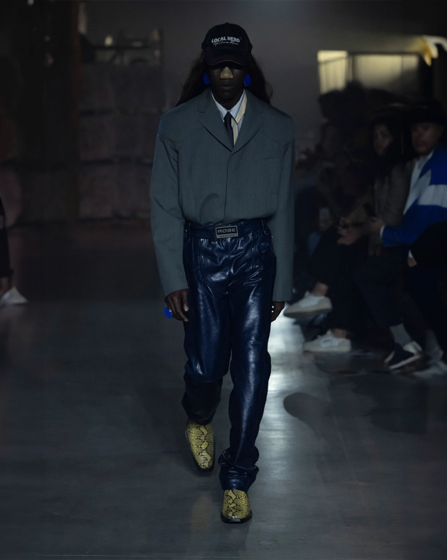 Martine Rose brought her subversive vision to Milan, showcasing her left-field menswear in between the likes of Prada and Giorgio Armani. Men were dressed in pencil skirts and fishnet stockings, while leather chaps, for which she has always been a fan, were cast onto tailored trousers. In keeping with the summer of sport, and indeed Rose's own love of the game, football shirts were shrunken and tracksuits were warped. It was a very British, very Rose-ian collection, in the heart of Milan.
