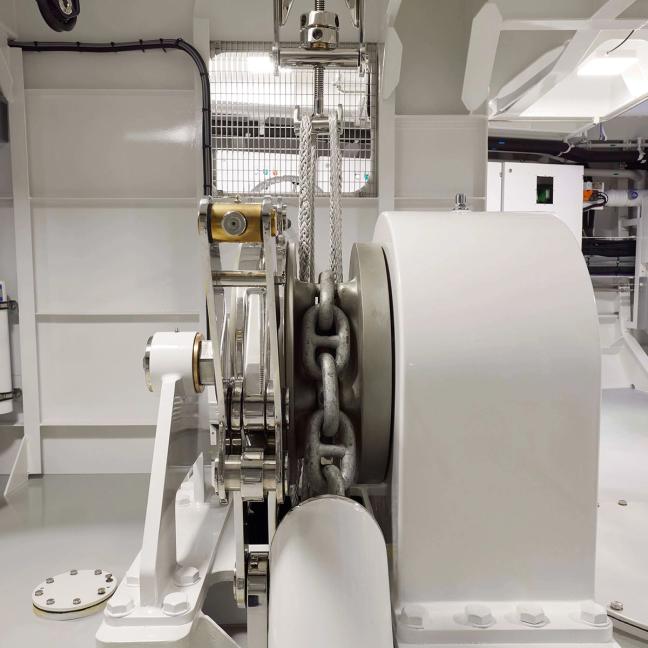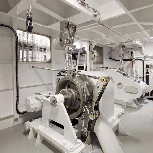 Following in the footsteps of Feadship’s first hybrid yacht, Savannah, which launched in 2015, Obsidian features more than four times the electrical storage capacity,with no drive shafts or rudders, resulting in less drag. Powering it all is a 4.5MWh battery bank that is charged by four generators, providing power to the yacht through a 1,000-volt system. By Feadships’s estimates, that’s enough to allow Obsidian to cruise for 35 nautical miles at 10 knots on batteries alone, or to operate in silence for 10–15 hours in harbour.