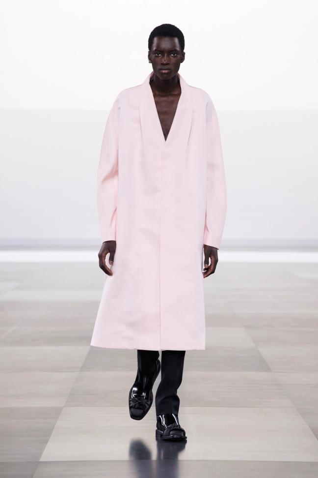 Staged in a clinical setting - just a series of steps and an all-white room outside Paris’ École Militaire - the show presented one of Jones' best collections yet. Silk blouses sat alongside excellently crafted leather jackets, while crystals adorned the shoulders of tailored coats and the pièce de résistance, a show-stopping couture opera coat in baby pink, closed out the show.