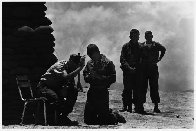 The negative for this image has been so badly damaged that it has previously remained unpublished. This priest is hearing the confessions of the soldiers before they go into battle. Very early in the Battle of Hue, the fighting had been so intense that a US chaplain offered me the last rites. I didn’t accept. It had frightened me.