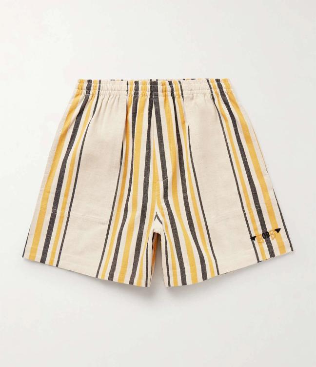 Another vibrant item, these shorts, rather amusingly, take their design cues from an early-20th-century kitchen towel, and both the variation of stripe widths and interplay of light and dark tones will help you contrast nicely against a beach of baggy cargo shorts. Due to the statement scheme, either pair with the matching shirt, or a plain T-shirt, in order to keep the top half of your ensemble subdued.