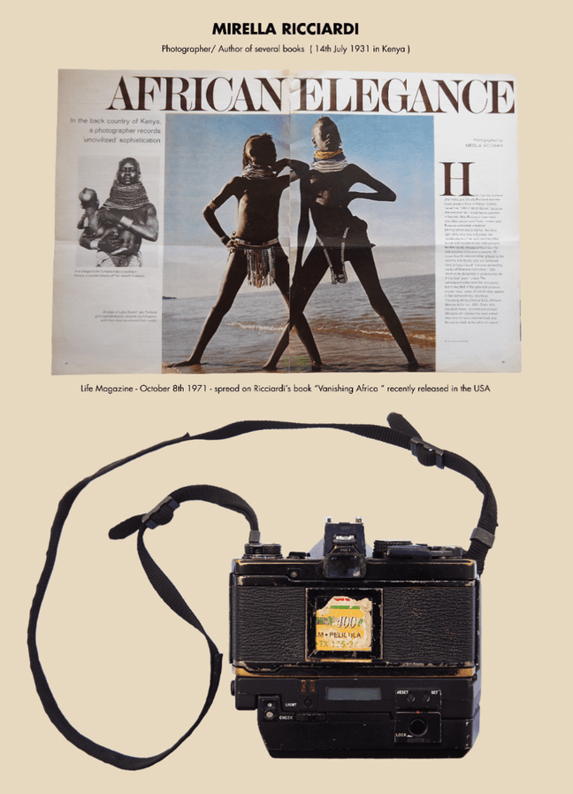 Another photographer whose cameras I photographed made it their life mission to record the last tribes and their traditions. In her book Vanishing Africa, Mirella Ricciardi re-appropriated the use of anthropological photography at the turn of the century to display the noble savage of Africa. With the help of the fast-changing times, she created a new photographic genre, dedicated to the recording of eroding life styles of primitive tribes around the African continent.