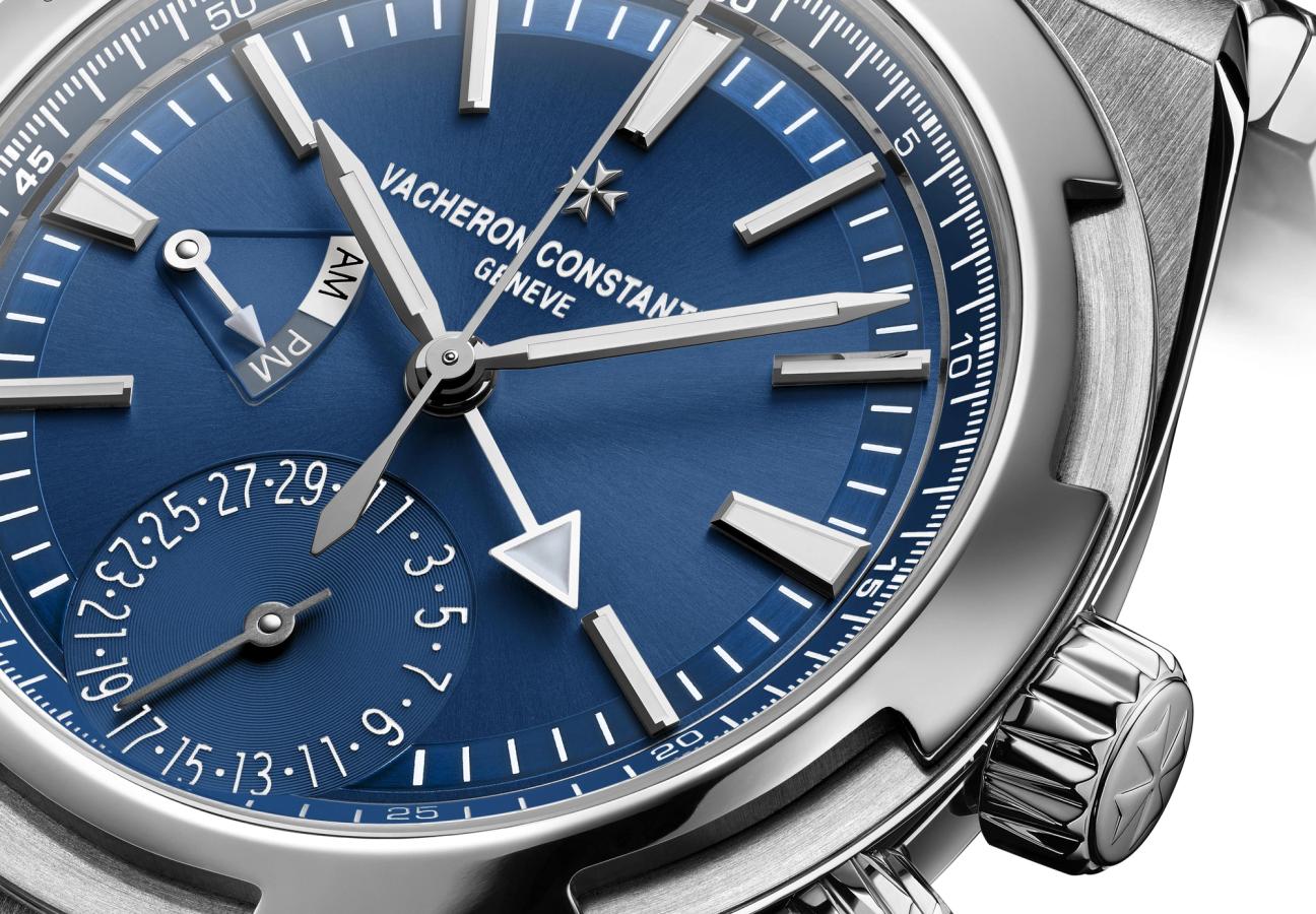 The Overseas packs dual time and AM/PM indicators into its swimming-pool blue dial, allowing the wearer to dip in and out of time zones with a single glance.