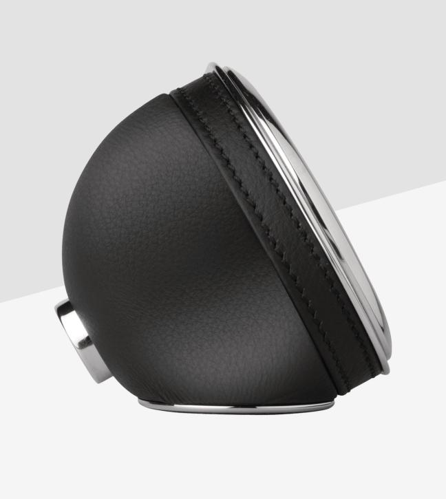 What’s it made from? Crafted from palladium-finished stainless steel, this dashboard-style table clock has a curved, sleek body upholstered in black leather and is finished with a brushed front.