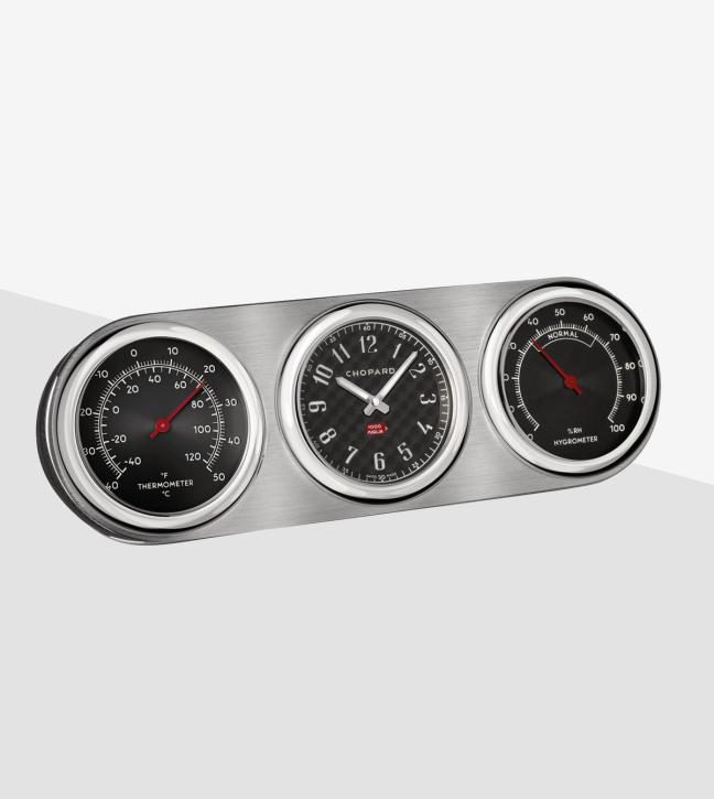 Which Maison made it? Chopard, the celebrated Swiss manufacturer and home of model ranges including the Alpine Eagle and the luxurious L.U.C. This table clock, however, takes its styling cues from Chopard’s Classic Racing range; that itself was inspired by co-president Karl-Friedrich Scheufele’s passion for automotive engineering.