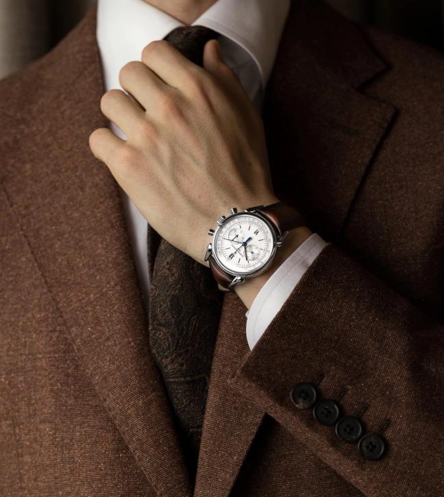 Only 36 were made, adding a layer of mystique to its striking looks. “Aesthetically, we have kept the spirit of the watch,” says Selmoni of 2019’s reinvention. And there’s certainly more than a touch of the OId Money, mid-century swagger of the original. The case has been expanded to a more modern (but still understated) 38.5mm, and the innards boast a gorgeous manual-winding chronograph Calibre 1142 which beats at 21,600 vibrations per hour and has a 48-hour power reserve.
