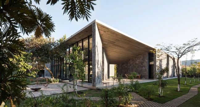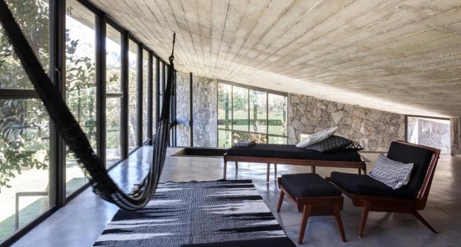 Its sophisticated engineering feigns a simple and seamless flow, structured as a geometric square, the building’s roof connects three pavilions with two covered patios. But the use of stone in the build is versatile in more ways than one, providing a warm and cosy feel in the evenings and colder seasons and cooling its residents in hotter weather. The design is savvy as well as tasteful, where the local stone is useful for its low cost and durability as well as for its utilitarian look.