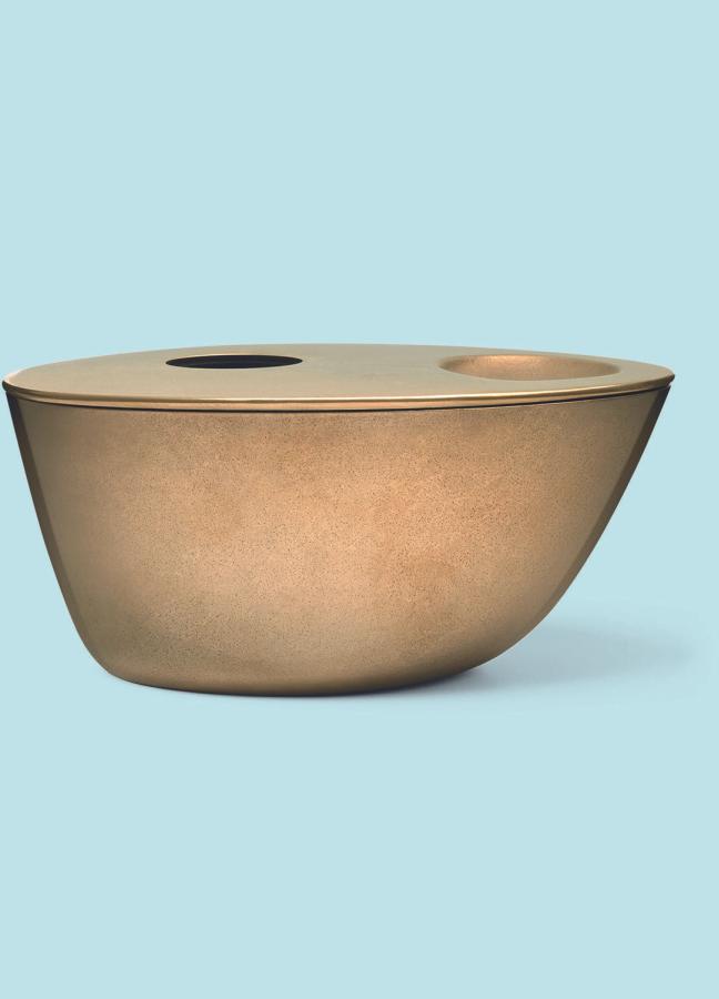 A favourite among the front-row pack and widely considered an indicator of fine taste, the Aesop label is famed for its wonderful balms and soaps. This solid-brass oil burner, however, is one of its lesser-known creations, but its brutalist appearance feels worthy of a plinth. To use, place a lit candle in the cradle, set the lid back in place, and let yourself be enveloped by the aromas.
