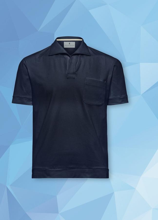 A navy polo shirt perfectly balances 'smart' and 'casual'