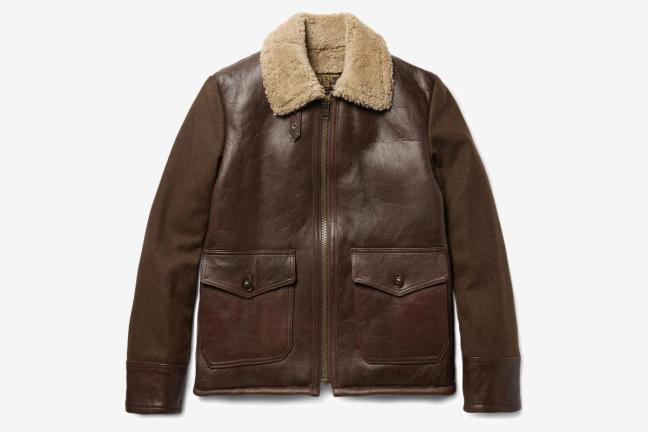 Motorcyclists, pilots and many of Hollywood’s leading men have been lured by the rugged appeal of Belstaff’s carefully crafted jackets. A reworked version of its waxed ‘Mentmore’ blouson, this version is constructed from weighty chocolate leather in a classic aviator shape and has a fuzzy shearling collar that can be detached. It’s equipped with plenty of pockets and fully lined for additional warmth – a worthy investment.
