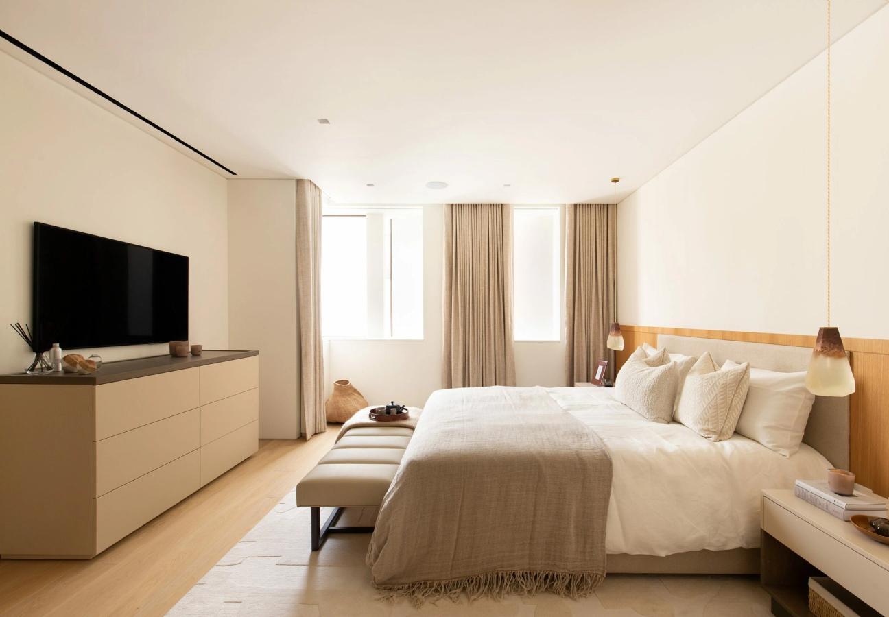 Rodić Davidson Architects, the London firm renowned for their restrained style, were responsible for creating the bones of the property, and for this project they took a 20th-century building, replaced it with five family-sized apartments, and arranged each accommodation around sizeable courtyards that allow for natural light to flood through the floor-to-ceiling walls and into the living spaces. This idea of injecting a breezy quality into the building is further complemented by swathes of greenery that have been planted on the premises.