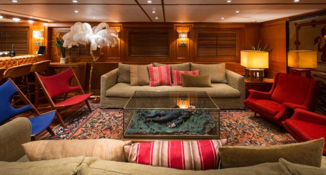The result is quite extraordinary. Building on the significant history of the yacht and its previous owners, Speake peeled away the interior to remove the excesses but preserve the yacht’s narrative, while adding the client’s own patina and personalisation to create a luxurious yet informal, fun environment. ‘It’s more like a pied-à-terre than a floating hotel,’ she explains. ‘So for example we have one great fun drawing room that we call The Opium Den, and we got that name because it was designed around the idea of creating a mood that is elegant and louche, but not too louche.
