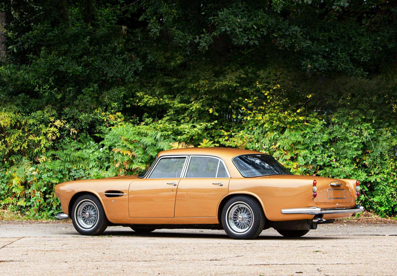 In topaz-tinted gold, this particular model will go under the hammer at Bonham’s Bealieu Sale of ‘Motor Cars & Automobilia’ this weekend. Originally sold in 1963, the Rapide was hand-built to order and cost £4,950 (just over £73,000 in today’s money). Just 55 of these cars were produced between 1961 and 1964, and only 48 still survive. The gilded example you see here is one of the finest in existence — and has a story to rival almost any other Aston in history.