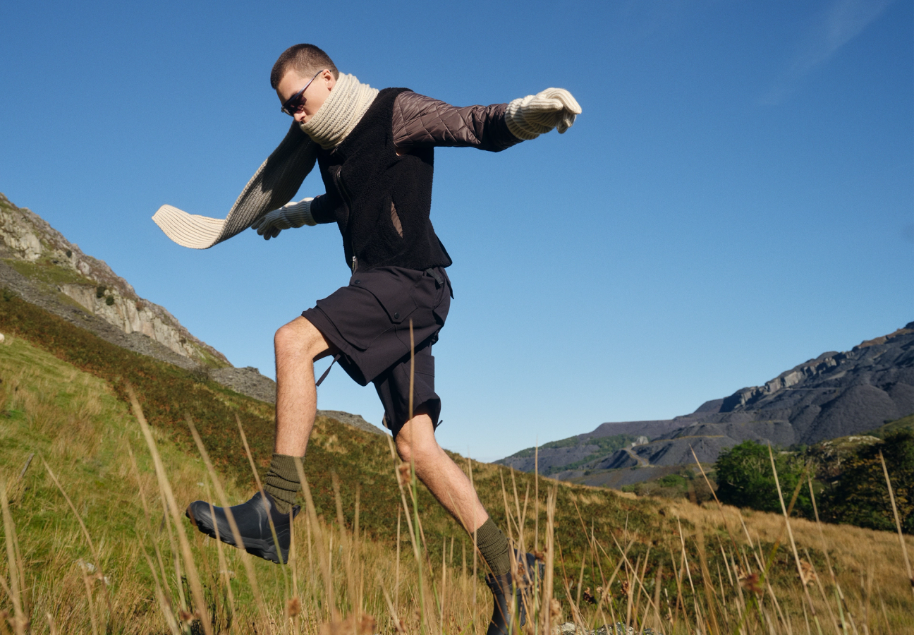 Captured in September at the luscious Snowdonia national park, famed for its rolling fells and trickling streams, the shoot embodies a new sensibility towards the great outdoors: getting dressed for it can be fun and, importantly, stylish.