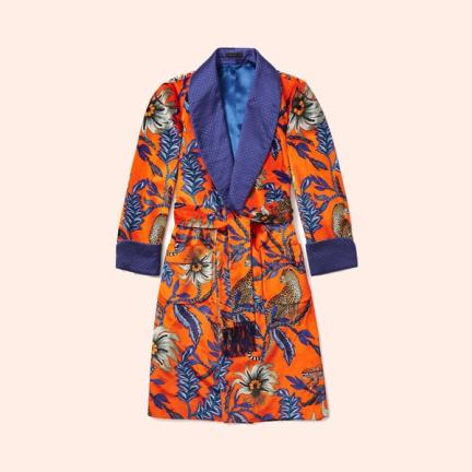 From Sir Plus, these Cuban-collared pyjamas come in a bold tiger print, roaring style into your bedroom. Turnbull & Asser is leading the silky charge, with its decadent set in a deep wine colour. And New & Lingwood, master of nightwear — just take a look at its dressing gowns below — has channelled the preppy look with its Old Etonian cotton set.