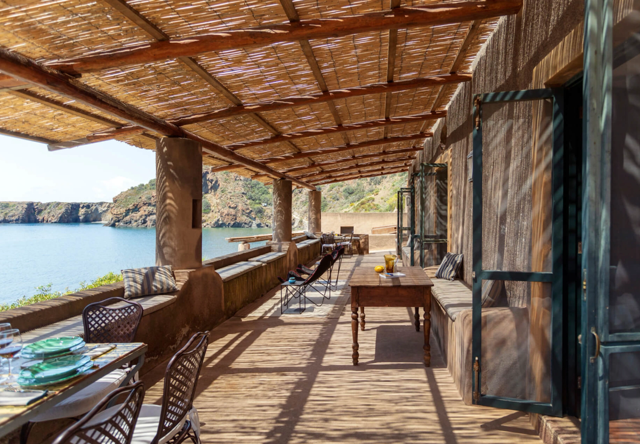 Set upon the fashionable Aeolian Island of Panarea and boasting garden gate access to Panarea's only sandy beach, Tenuta Frantoio serves as a glamorous yet unpretentious summer escape. The space itself is airy and spacious, with lofty wood and cane beamed ceilings and walls of sea-view windows and doors opening onto the main terraces.
