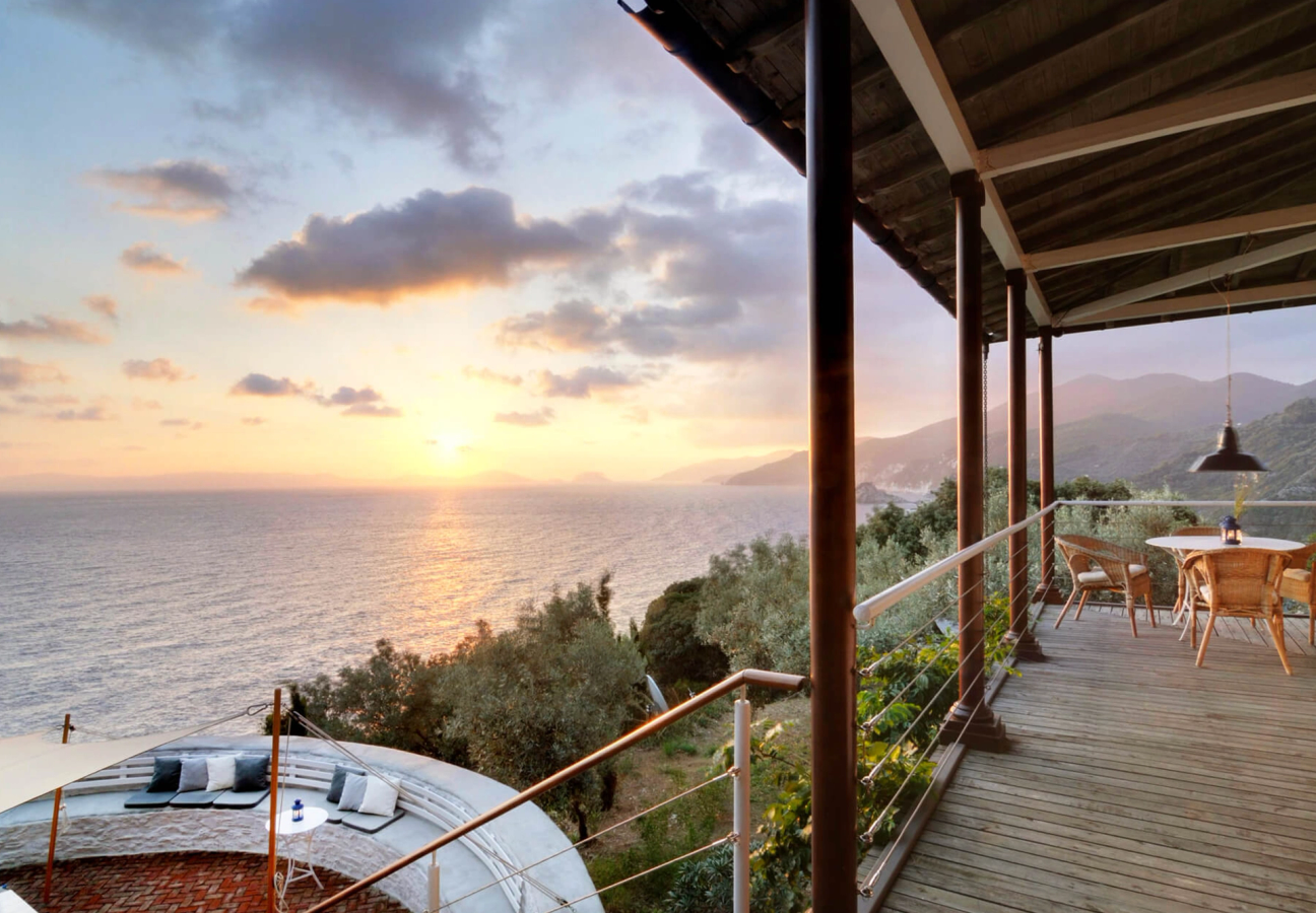 Designed by renowned French architect Marc Held, Maistros is a design-lover’s dream. The clifftop villa is nestled within two-and-a-half acres of Skopelos's northeast coastline, surrounded by Mediterranean pines, cypress and olive trees. Living areas and a wrap-around outdoor terrace boast stunning sea views, while private beach access and a heated pool offer swimmers the best of both worlds.