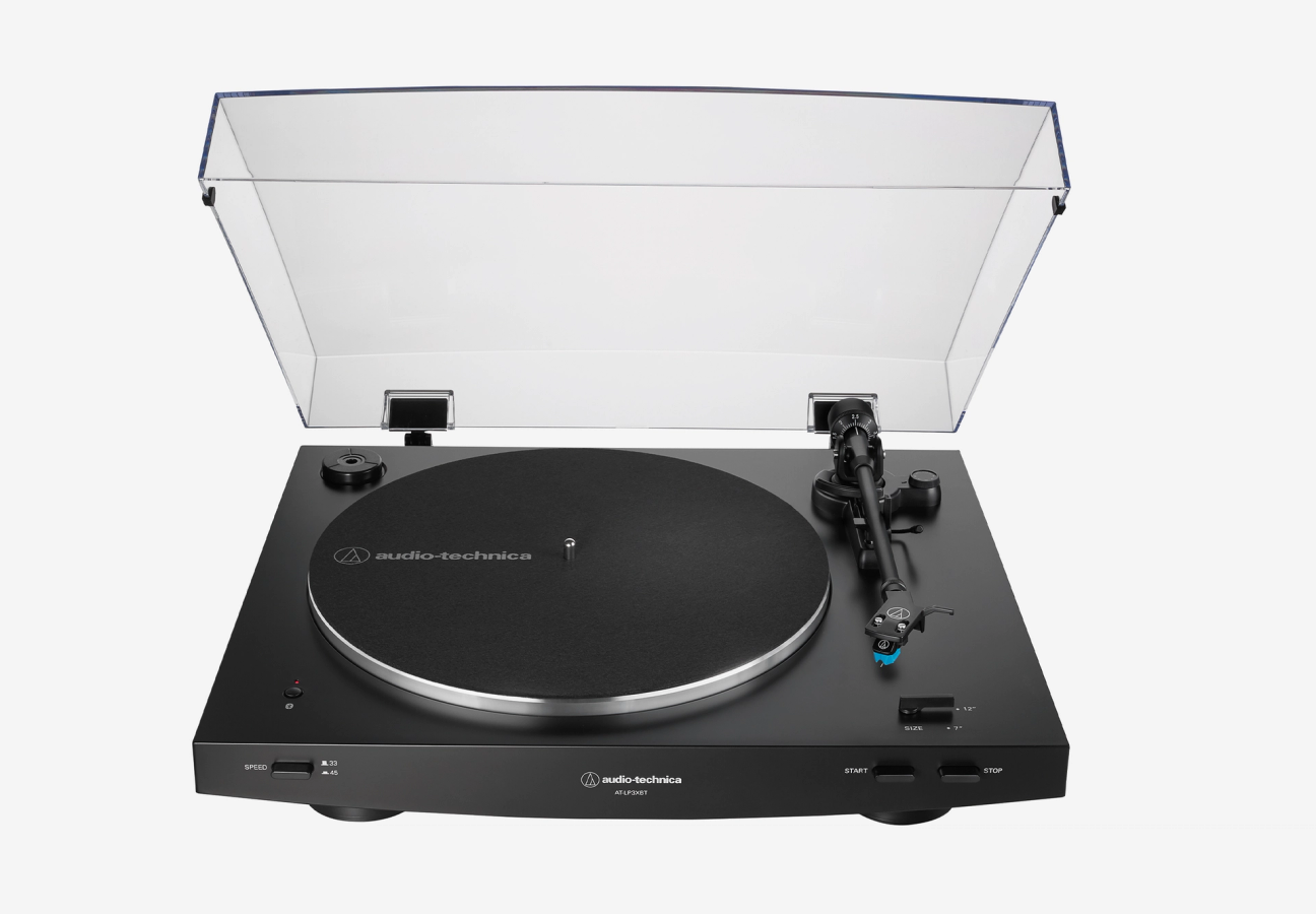 Audio-Technica’s labour of love is perhaps the most refined, elegant option in this list, a player with a low-profile aesthetic that appears more high design than a bit of everyday living-room kit. The build-it-yourself construction – from placing the platter to slipping the cover into the hinges – is both fuss-free but comprehensive enough to leave you with a sense of achievement; the fully automatic nature of it facilitates a smooth, easy experience and rotation; the one-button Bluetooth function bridges the gap between analogue and digital; and the tonearm’s removable AT-HS3 universal headshell and dual-moving magnet cartridge both facilitate a quick-and-simple cartridge-changing process when the user wants to play around with the sound. We also appreciate the fact that the die-cast aluminium platter and the felt mat on top dampen out any unnecessary vibrations.