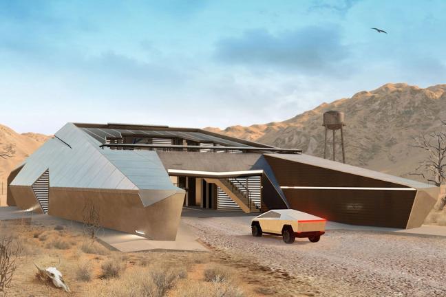 'Cyber House', an ultra-durable bunker-house that interprets Elon Musk's concept of the Tesla Cybertruck.