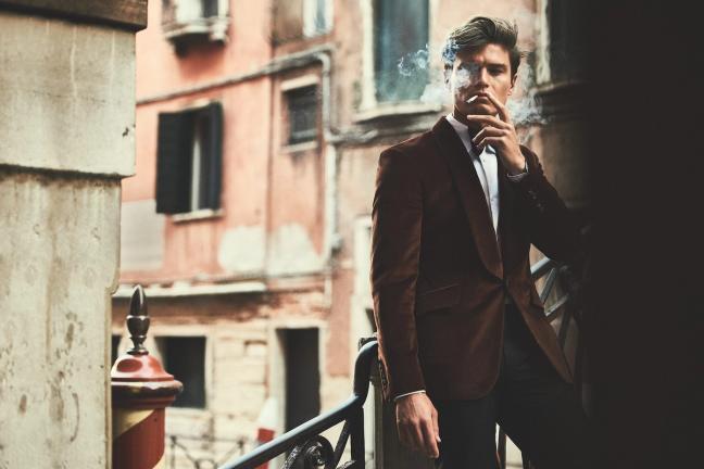 Oliver stays on the right side of creativity with an understated but unique smoking jacket from Hackett