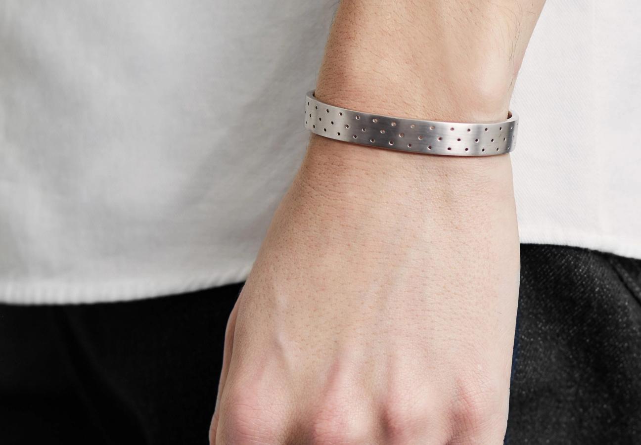 From a simple 5mm Polished Cuff to an Outline Bracelet rendered in a darker Ruthenium, we’d recommend you leave all other accessories behind. No pocket square, no dress watch and no extra pins or clips. Just slip on some silver and let its gentle sheen pique the other guests’ interest in you.