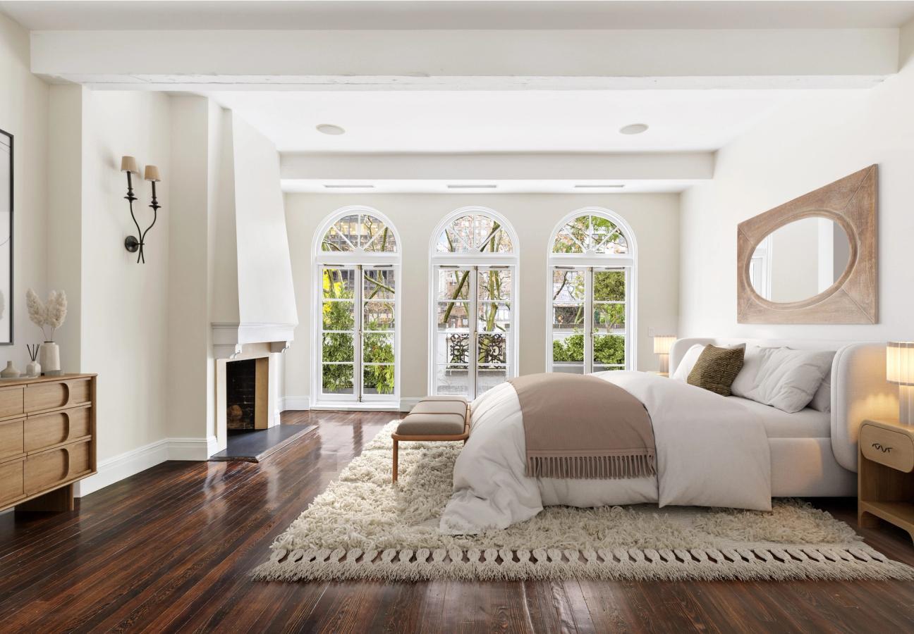 Measuring 19ft-wide, the pad – which is now renovated and largely defined by darkwood and swathes of white and cream – was built in 1899 and comes with an elevator, five-and-a-half bathrooms, five bedrooms and roughly 5,400sq ft of space across five floors, an ideal footprint for hosting the local art scene. Details that raise the appeal further are the seven wood-burning fireplaces, the arched glass windows, and the dual-level rear garden. Capping things off is the fact that the abode is part of Turtle Bay Gardens, a collection of 20 historic homes that are anchored by green space and have seen residents such as Katharine Hepburn and E.B. White.