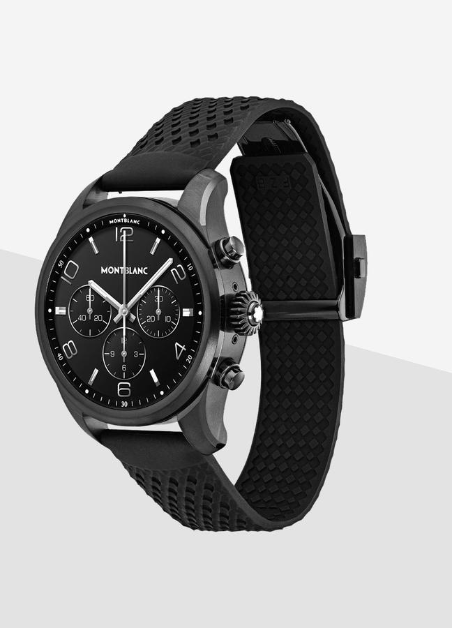 What other features? That black rubber strap is something special. Perfect for fitness fanatics, it balances ‘sports’ and ‘smarts’ beautifully, and is embossed with a handsome black diamond pattern. Ideal to take you from the office to the gym — and back again.