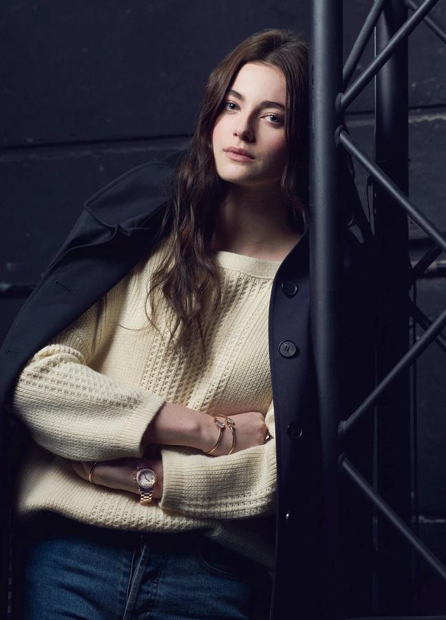 “I never went to drama school so I’m a bit like a sponge, learning things from everyone,” says Millie. There’s been a lot to soak in. After an early start in children’s theatre (“I used to go into film auditions and do them as if I was talking to kids”), Millie was quickly cast in several critically-acclaimed projects, including Viking drama The Last Kingdom. For all that youthful, sprightly optimism, though, it’s a saga of an altogether darker disposition that might come to define Millie’s early career.