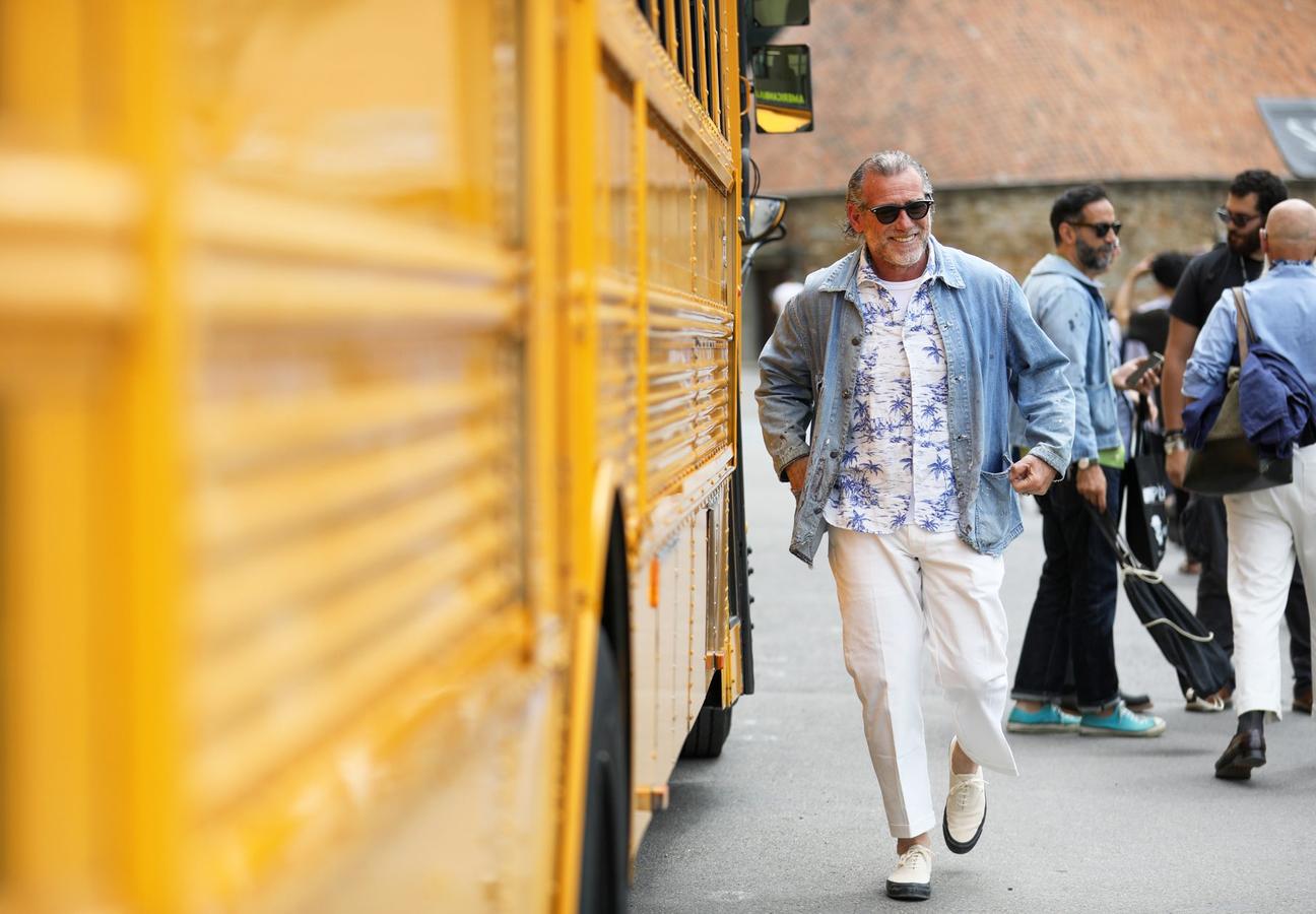 “White jeans, of course!” the entrepreneur exclaims. “And even better if they’re selvedge. The most important thing with jeans in general, whatever the colour, is that the denim does not stretch and that the fit properly conforms to your body. The width of your trousers, in my opinion, must never be less than 19cm.”