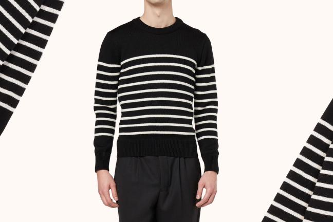 When the sun goes down on your BBQ, and the quality conversation stretches out into the night, you’ll need a quality sweater to see you through in style. Look no further than this classic French number (beret and onion necklace not required).