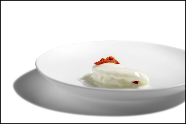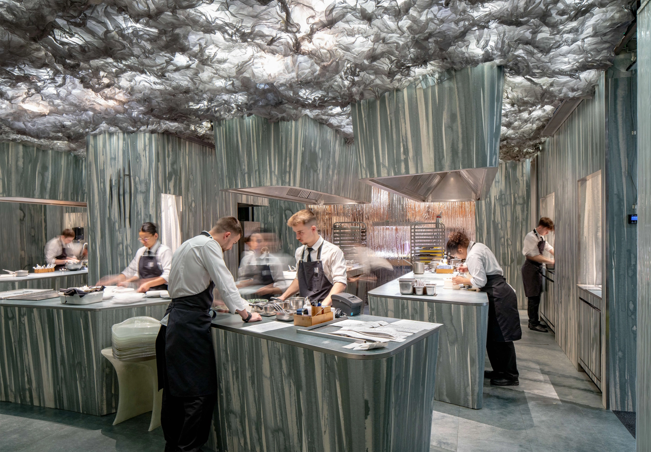And even with his back catalogue of elaborate, genre-twisting dishes – steamed brioche with rose-scented mozzarella; transparent discs of mango and black olive; a ‘folie’ salad that could be mistaken for a tidal pool – and his restaurant’s futuristic interior that looks like an ice cave on the Star Wars planet Hoth, he brings a certain restraint to the table that, if anything, exhibits a quiet confidence in his narrative.
